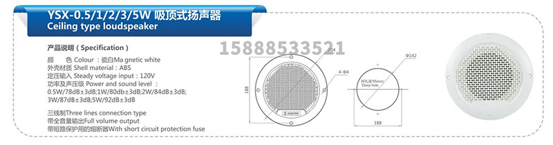 Marine suction top type speaker YSX-0 5 1 2 3 5W trumpeter Broadcast megaphone embedded Huanyan 120V