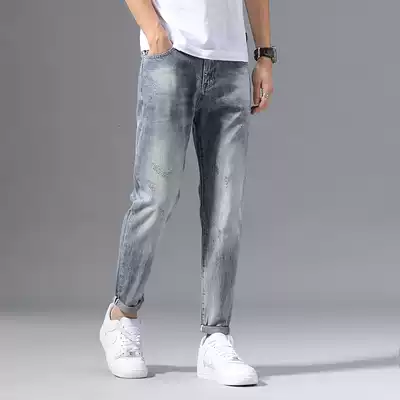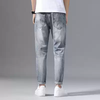 Hong Kong Tide Brand 2020 spring high-end jeans men's straight loose Korean trend Joker light casual trousers