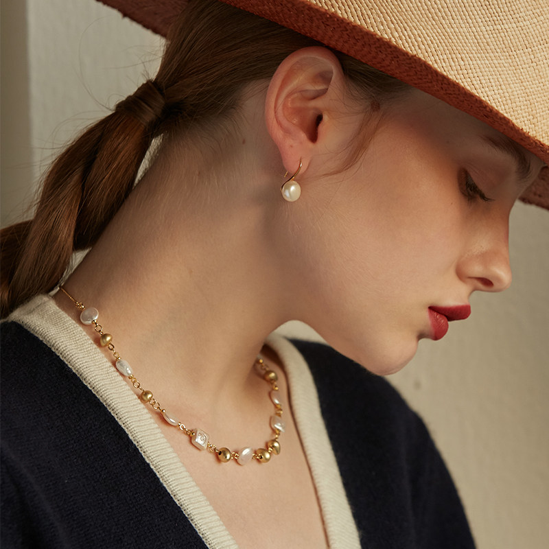 pn necklace Female Baroque shaped pearl Vintage European and American handmade light luxury niche jewelry Sweater jewelry Clavicle chain