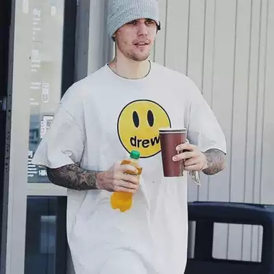 DREW smiley face Justin Bieber same summer European and American High Street Tide brand loose Street couple short sleeve T-shirt men