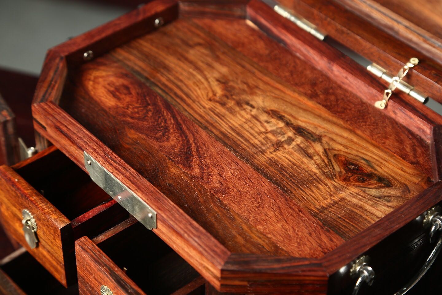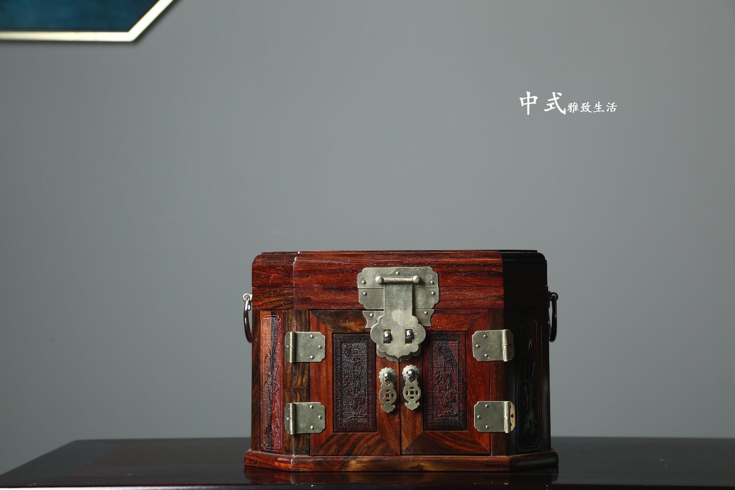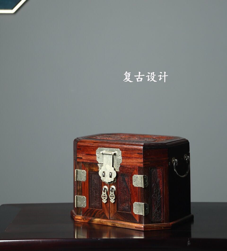 Red Wood Large Red Acid Branches Red Wood First Accessories Box Solid Wood Engraving Chinese Jewelry Case Mirror Box Hand-decorated Containing Box Wedding Celebration