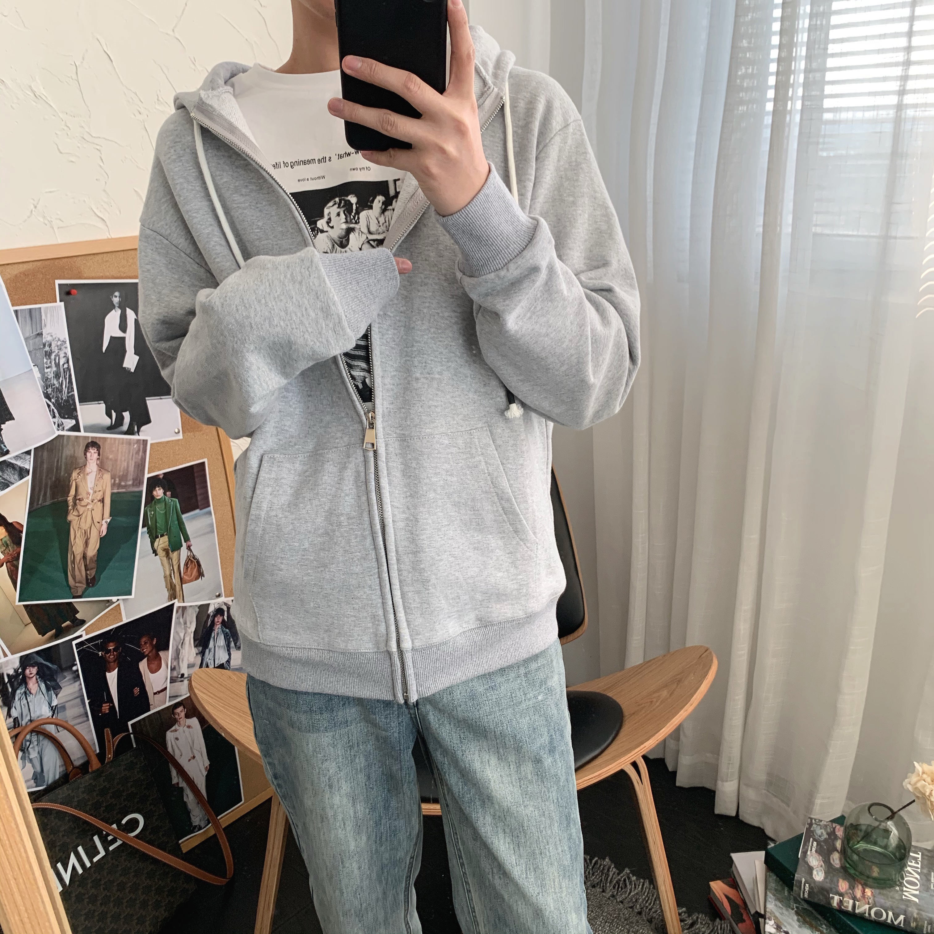 Agu Tea and Agu 20SS gray casual cotton suit male spring lazy hood sweatshirt two pieces
