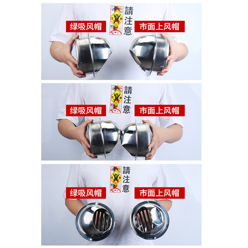 Green suction 304 stainless steel ventilation ball outer wall air outlet smoke machine exhaust hood ventilation windproof cover fresh air exhaust port