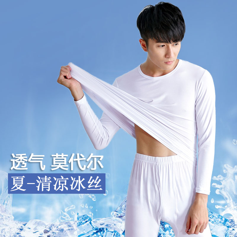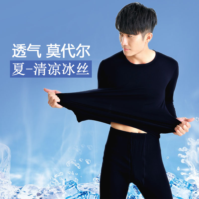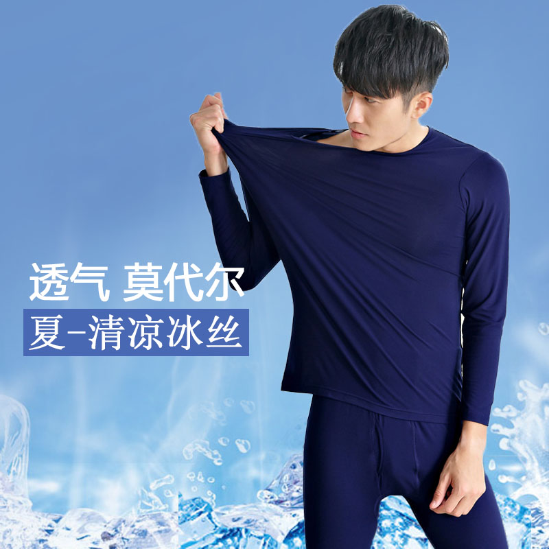 Men's Modale lingerie suit Spring autumn season pyjamas ultra-thin summer ice silk round collar long sleeve long pants home clothes