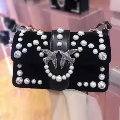 PINKO High 19 new twill velvet Pearl velvet bird shoulder chain chain wine bag women's bag swallow bag