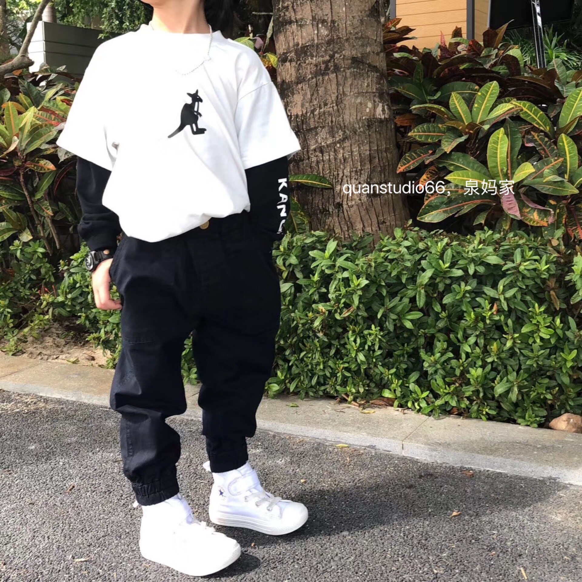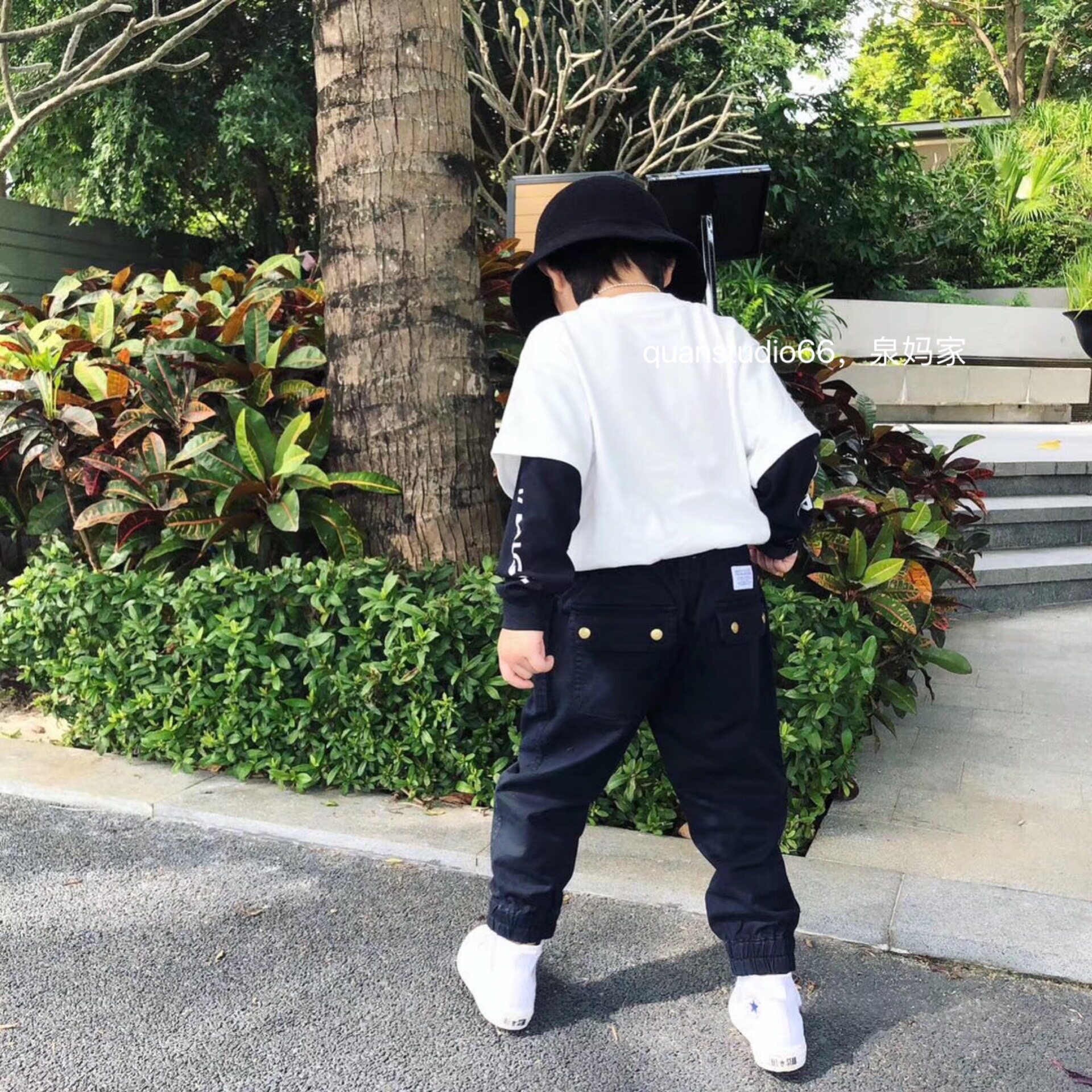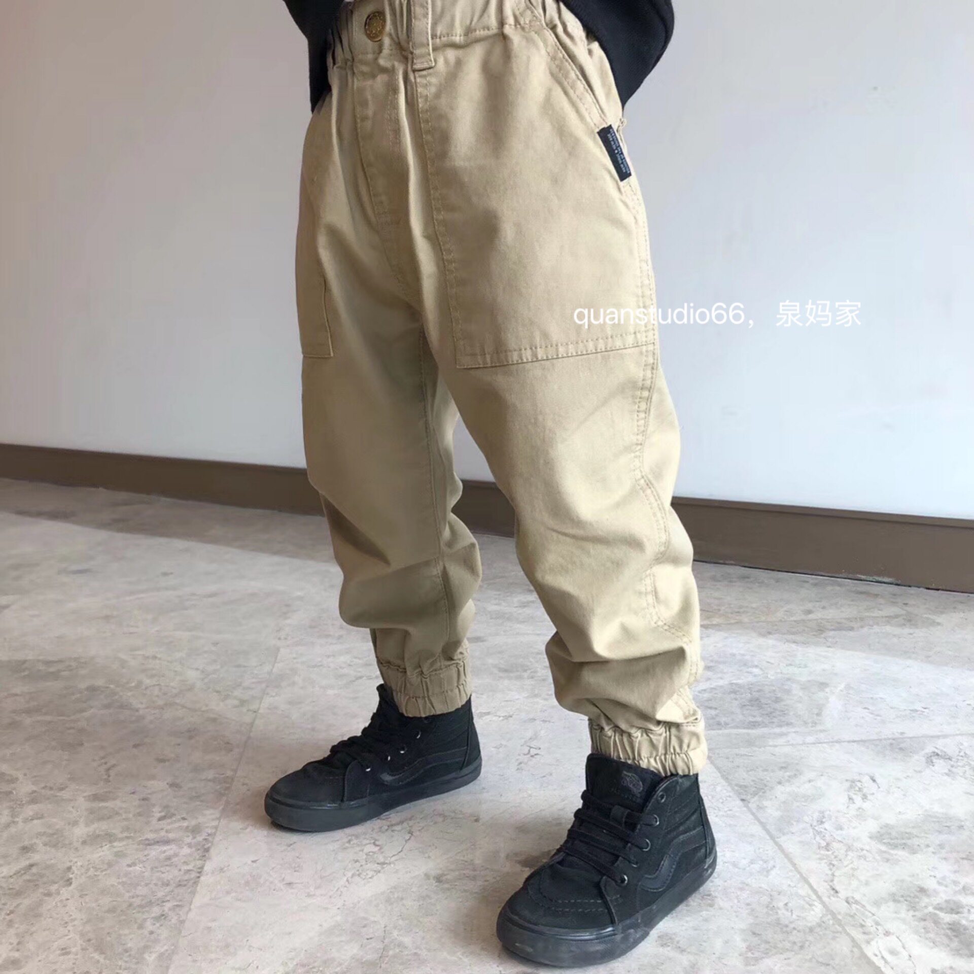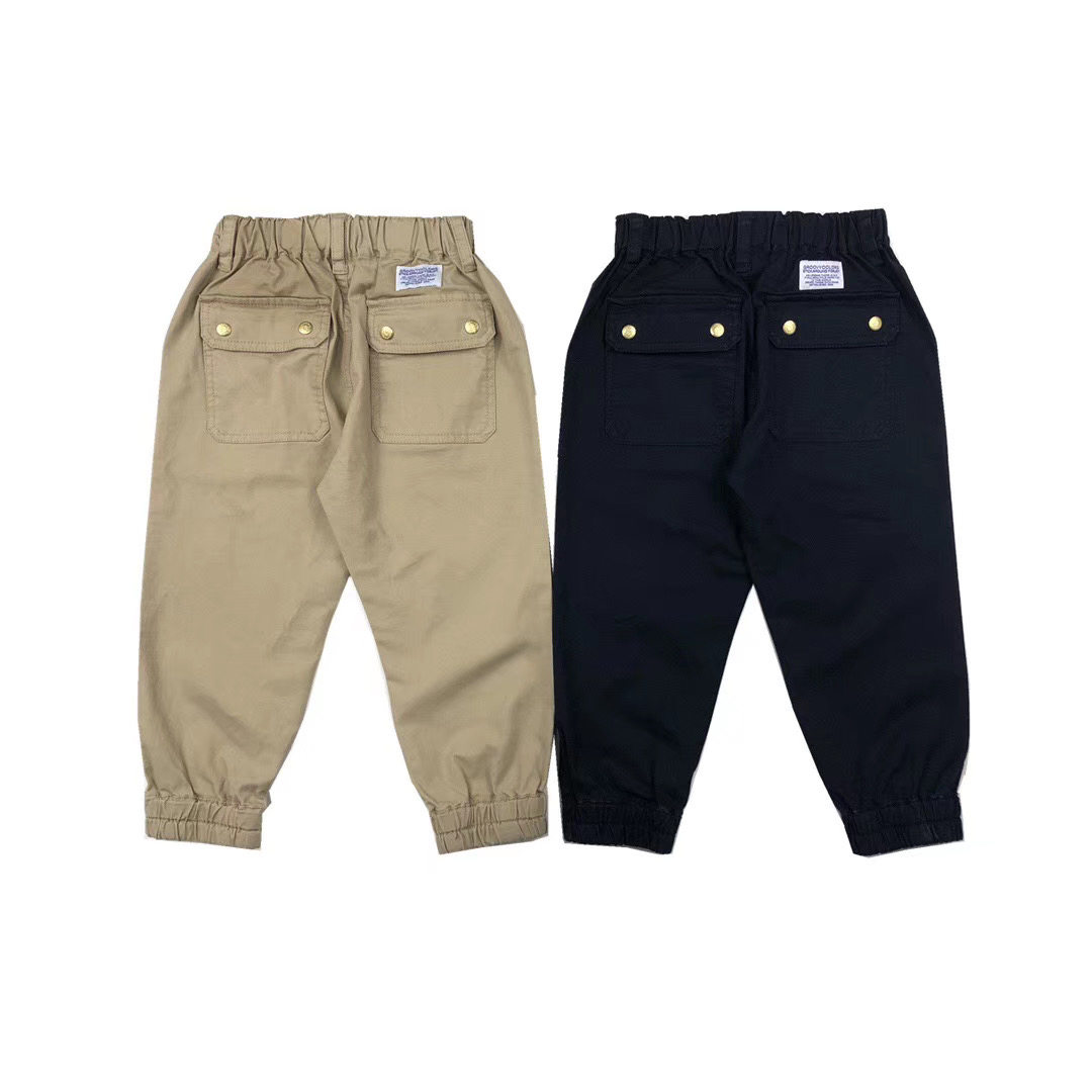 Quan Ma's Japanese men's and women's children's pocket tooling trousers Two-color casual shut-up drawstring pants Children's campus pants