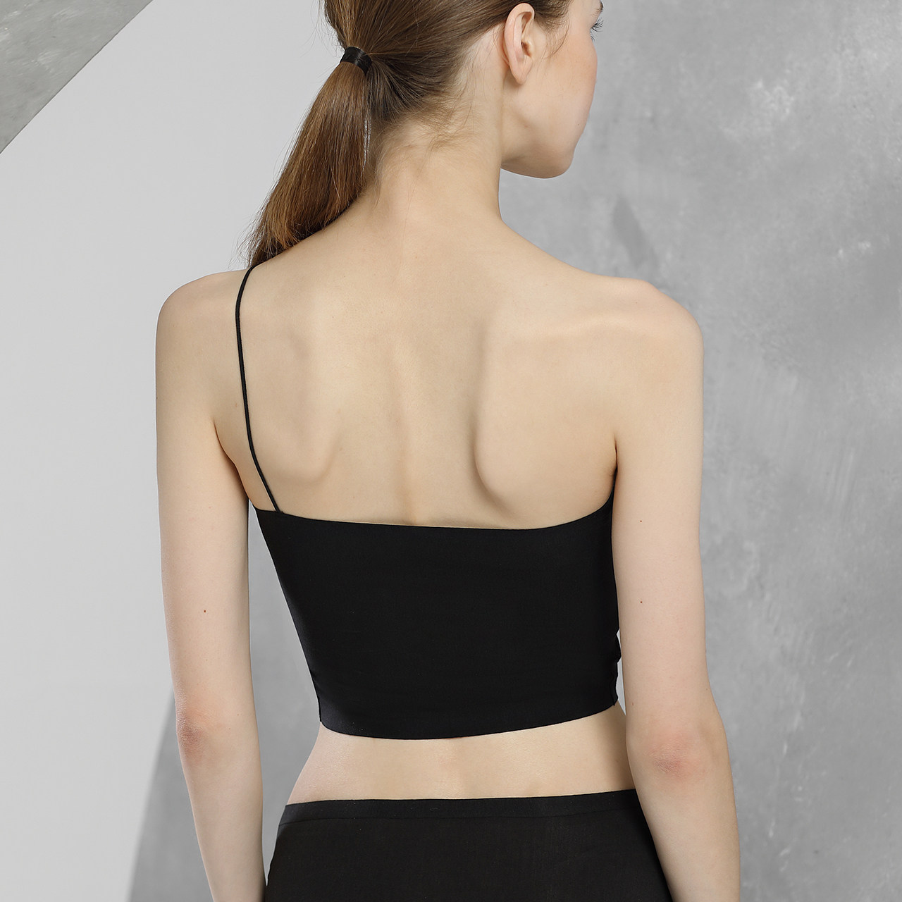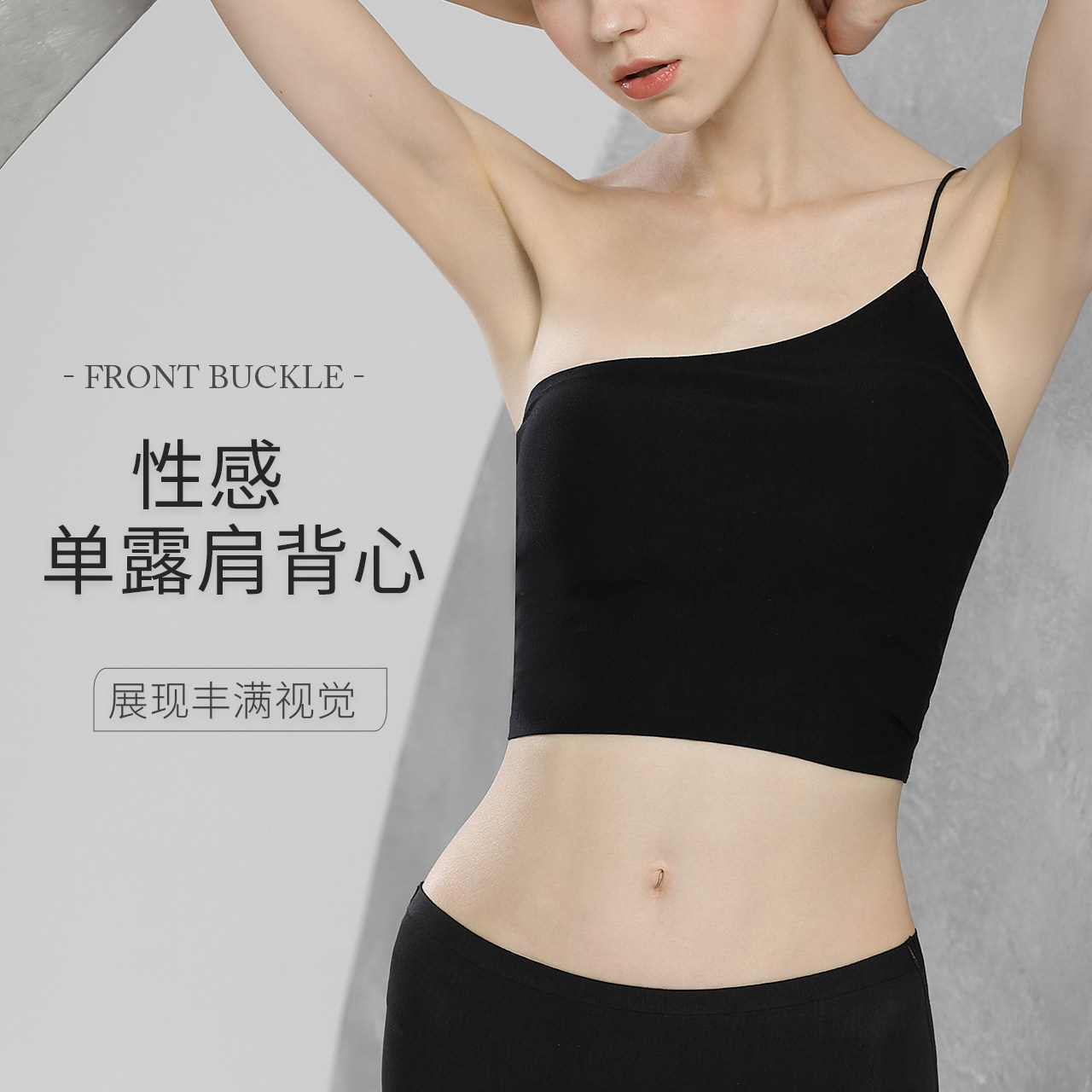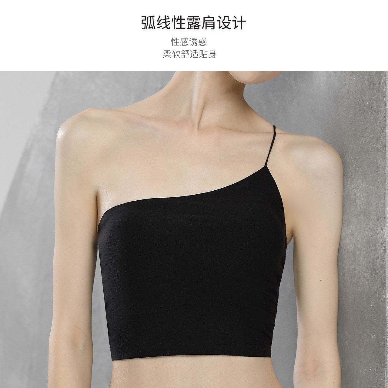 Single shoulder harness vest woman with chest cushion one-piece bra Sexy wrap Inclined Shoulder Tropes for Walking Light Underwear