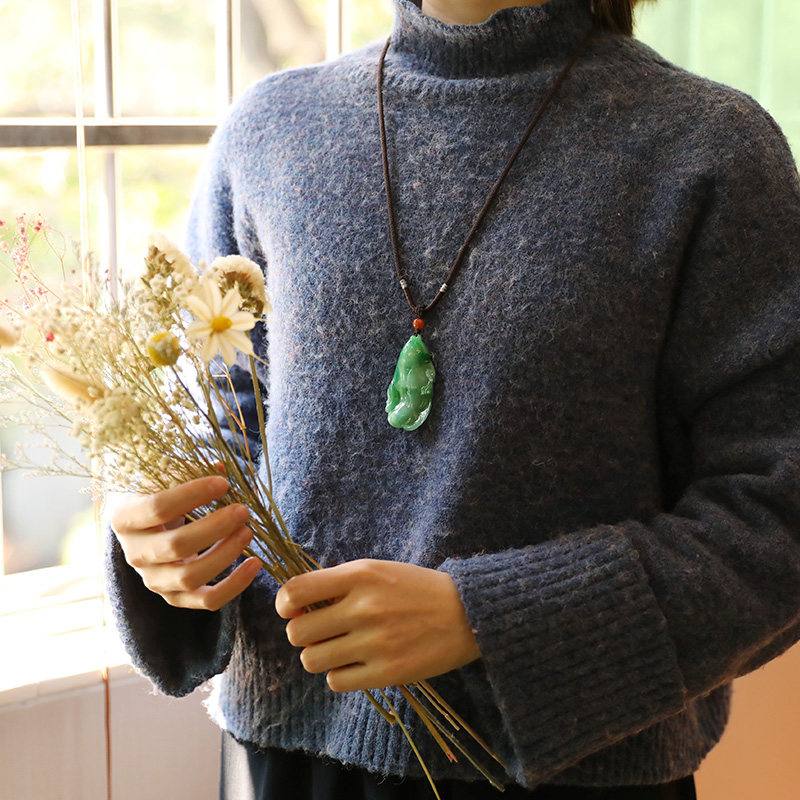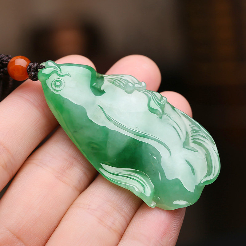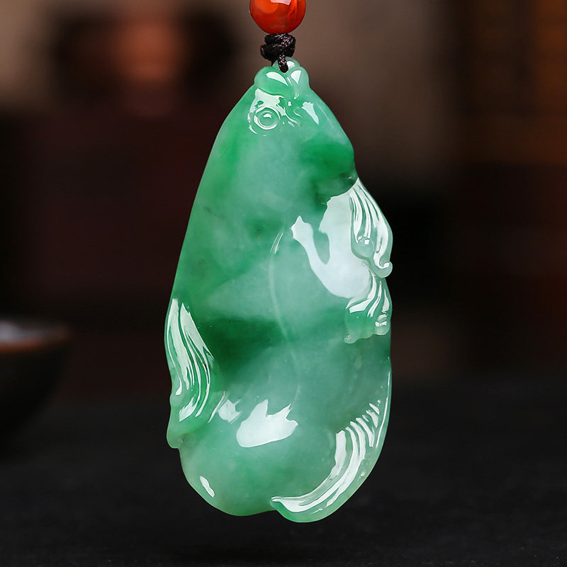 Xiang Zhenfu Natural ice seed floating green emerald pendant Liu When the master sculpted the emerald suspension of the emerald pendant male