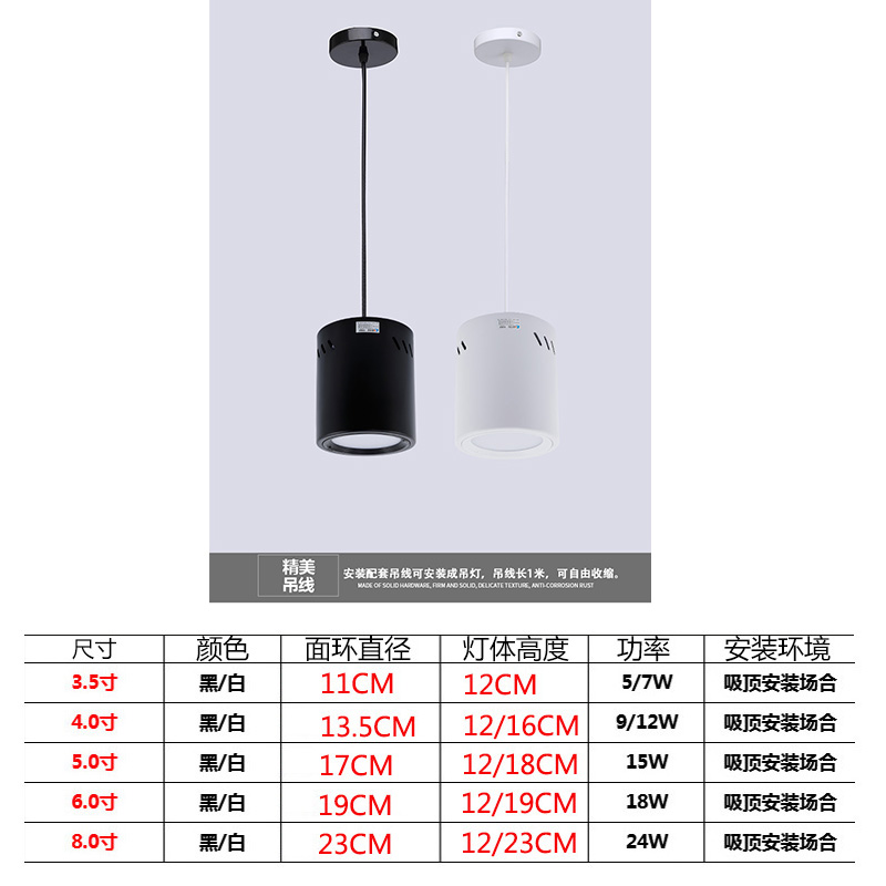 6 inch 18W warm white light diameter 19CM height 12CM 8 inch 24W warm white light diameter 23CM height 12CM 8 inch 24W positive white light diameter 23CM height 12CM