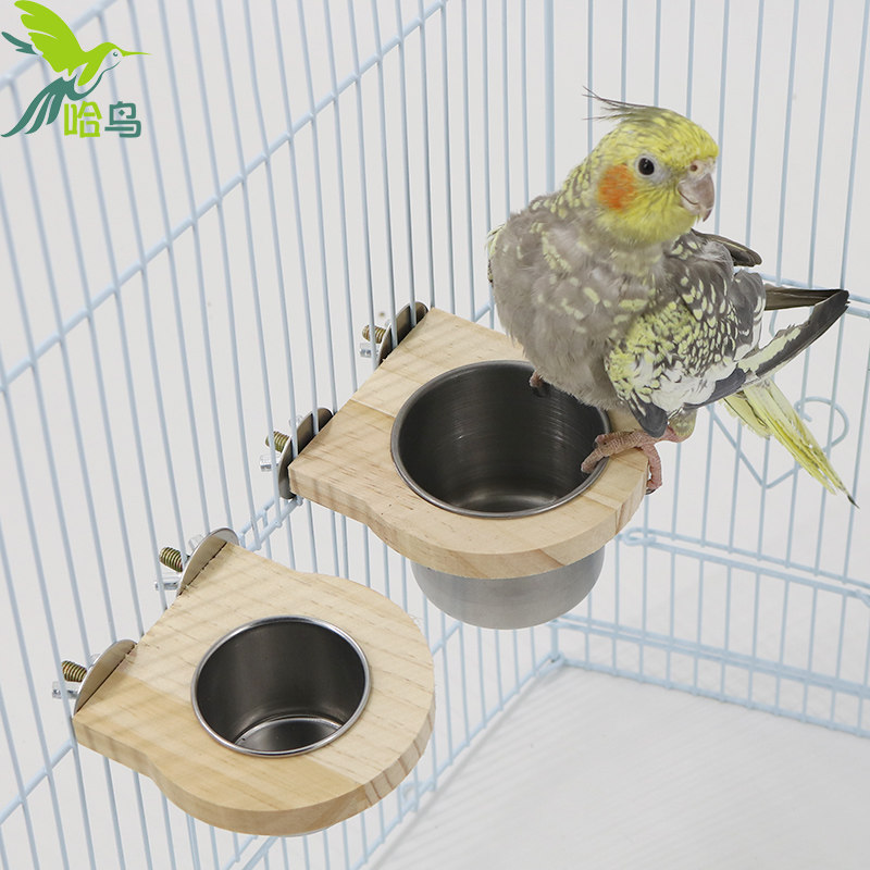 Harbird stainless steel bird food cup parrot bird food box with shelf feed box bird cage accessories Bird with feeding machine