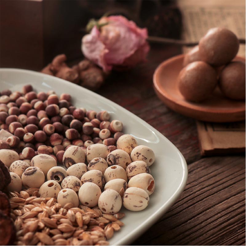 Lotus seed mustard yam red coix kernel white lentil malt hawthorn orange stem oligomer isomal syrup