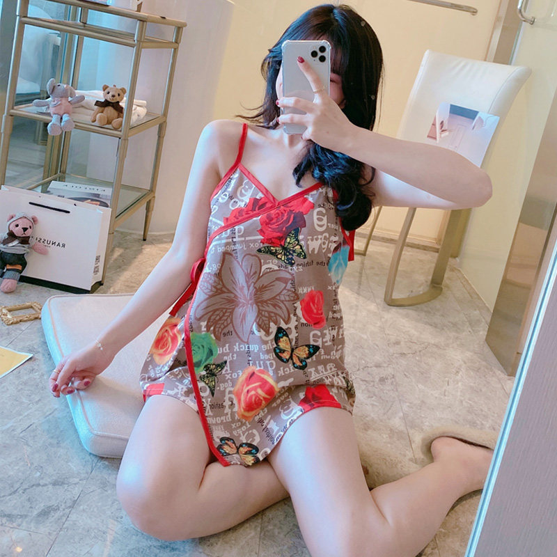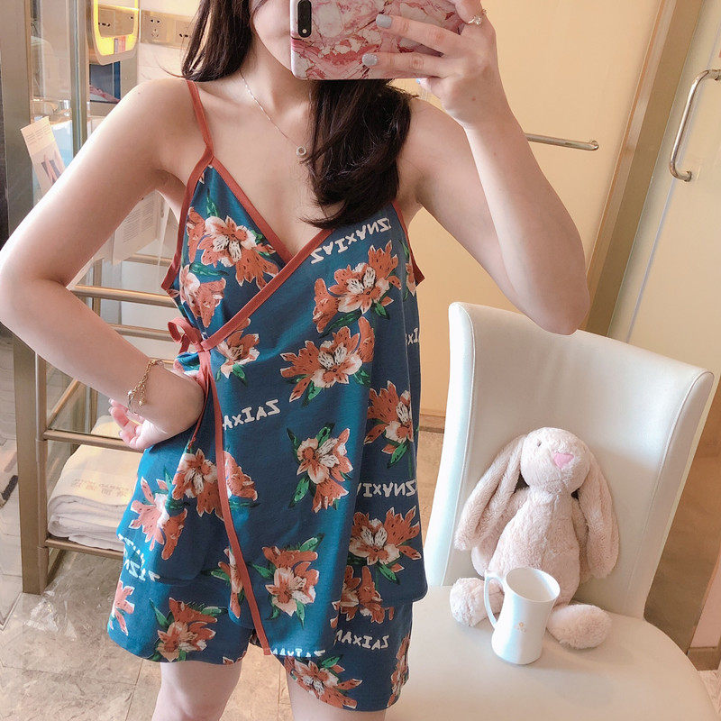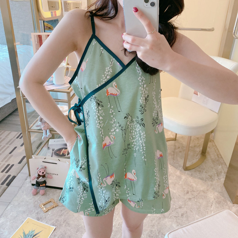 Pajamas women's summer Japanese kimono sweet cute suspender cotton sexy Korean version vest two-piece suit Home clothes