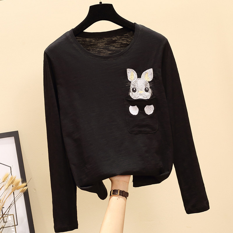 Korean long-sleeved T-shirt women's 2020 spring and autumn new short style loose all-match Korean version of the Western style embroidered outerwear trend