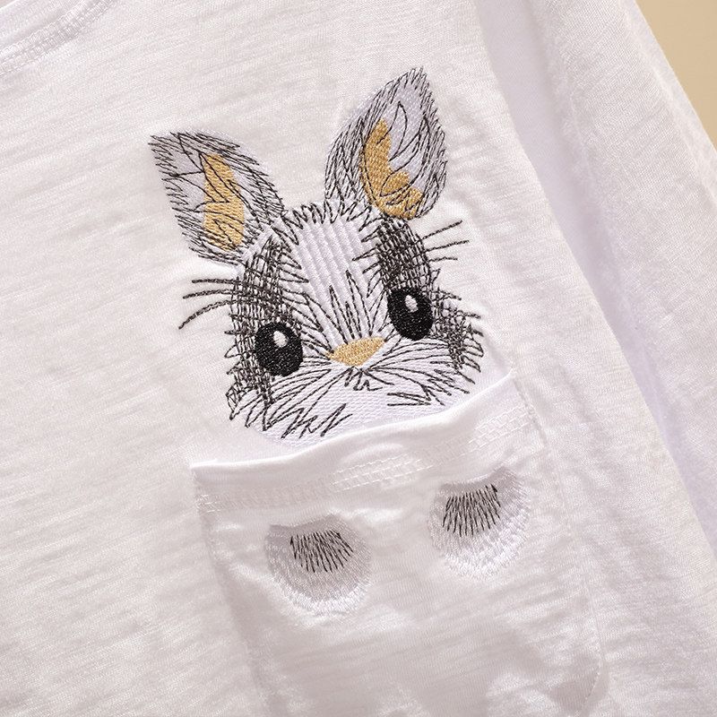 White (rabbit embroidery) pink (rabbit embroidery) black (rabbit embroidery) white (goldfish embroidery) violet (goldfish embroidery) pink (goldfish embroidery)