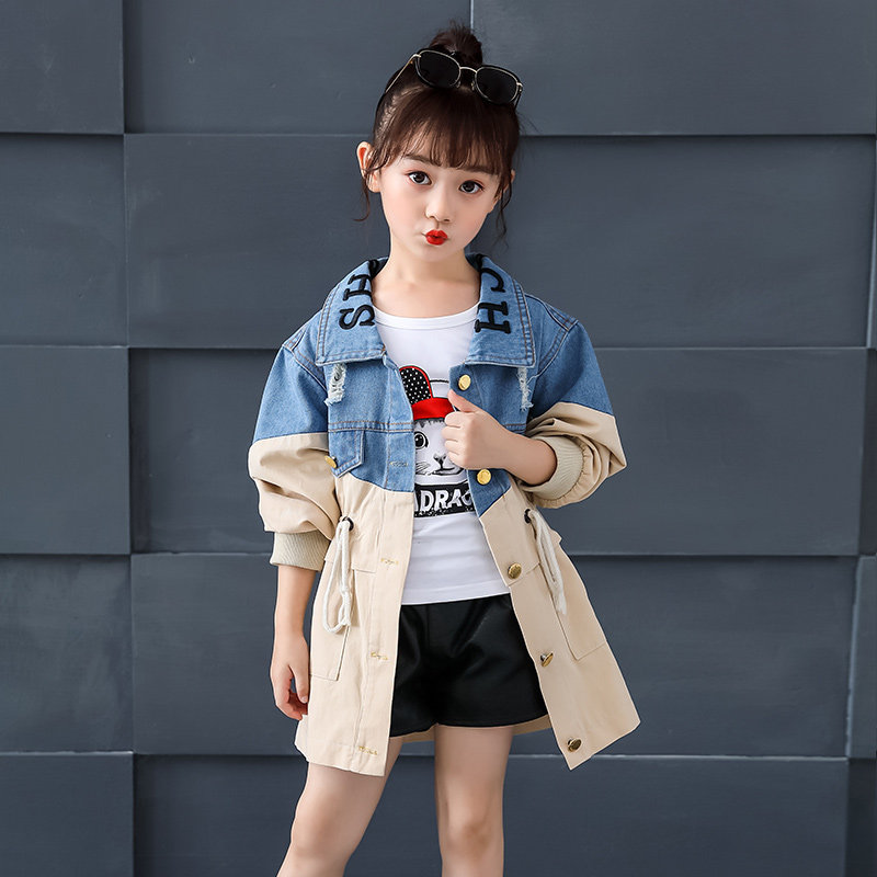 Girls' denim jacket 2020 new spring and autumn clothes Western style children's fashion stitching top little girl trendy windbreaker