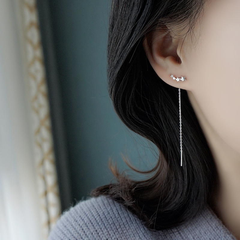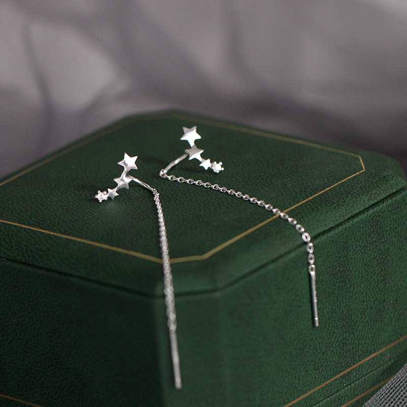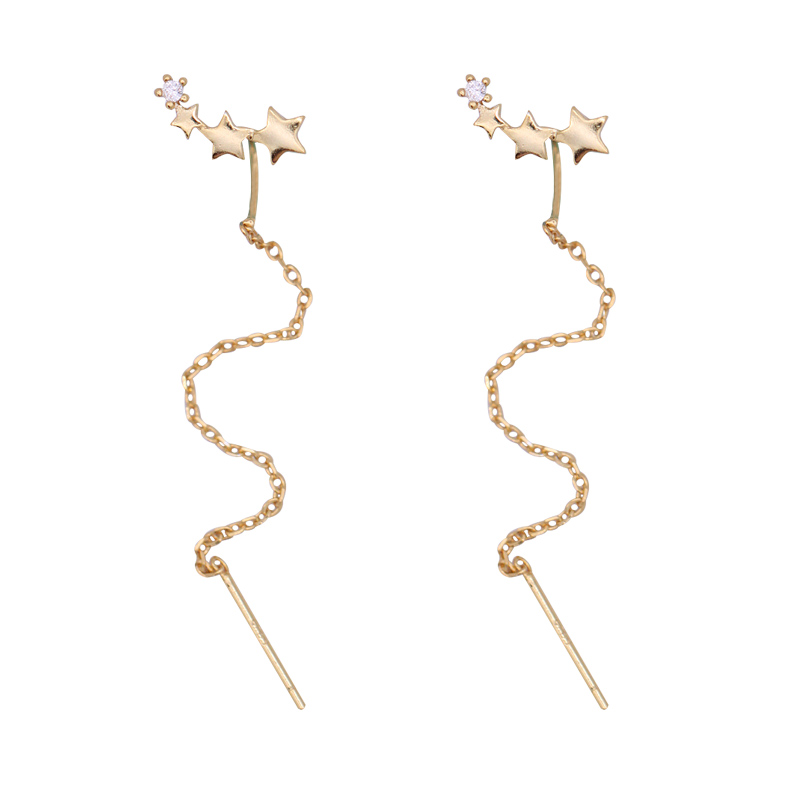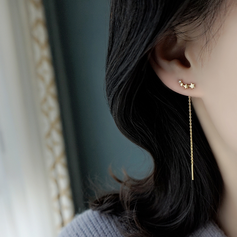 Small Z Youpin 925 sterling silver 14k gold gradient 3 stars five-pointed star zircon super beautiful meteor face thin ear line