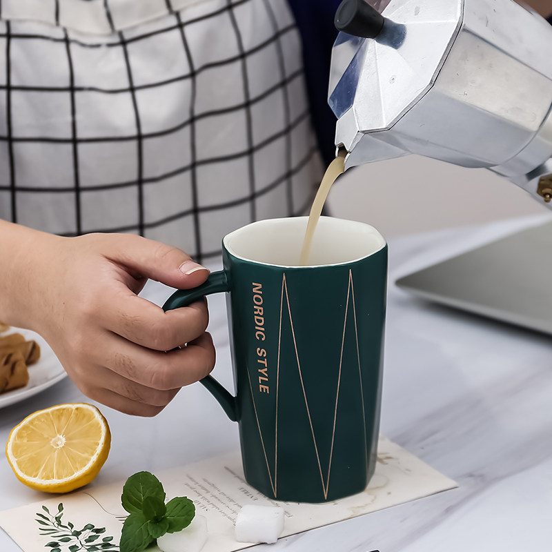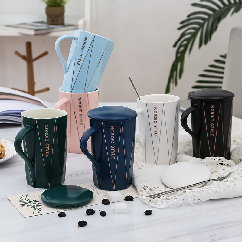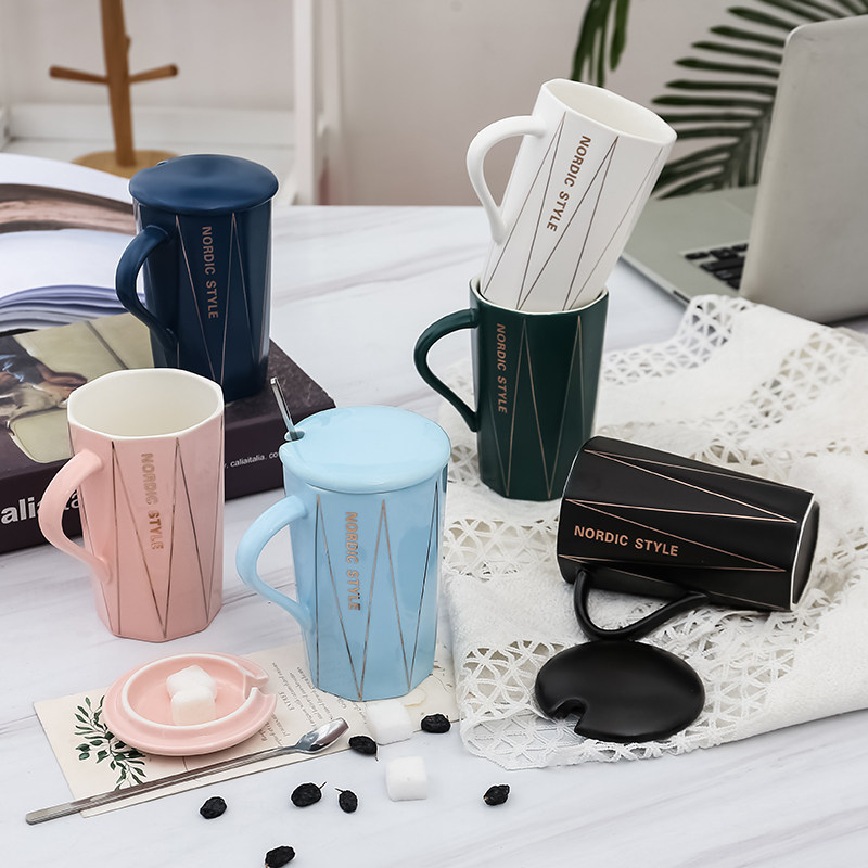 Black white line geometric cup with stainless steel spoon with lid white black line geometric cup with stainless steel spoon with lid dark green white line geometric cup with stainless steel spoon with lid blue white line