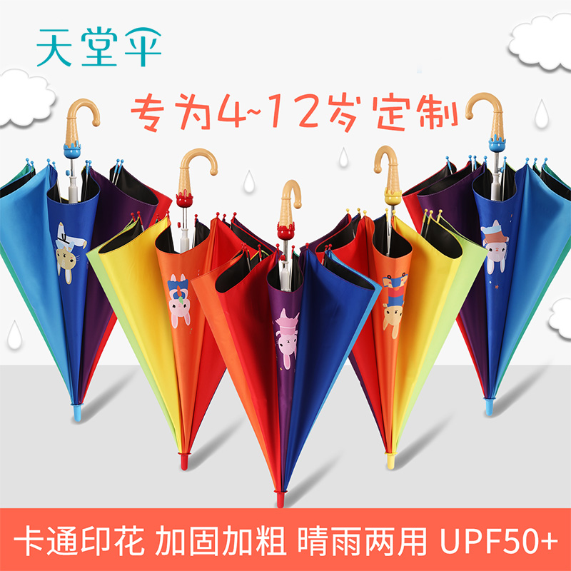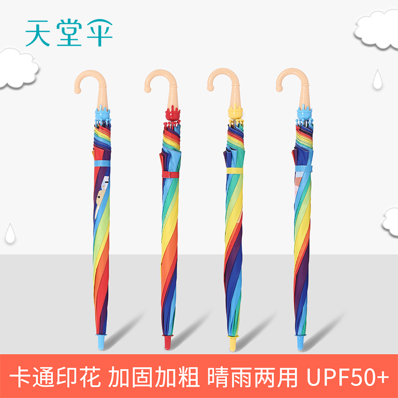 Paradise umbrella Vinyl sunscreen parasol straight handle rainbow cute children's primary school umbrella Safety handle umbrella Men and women