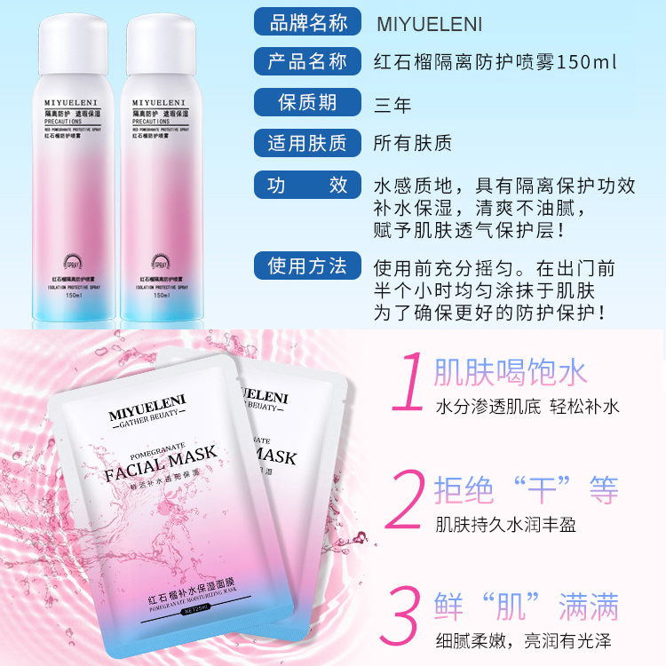 2 bottles of spray, 3 pieces of red pomegranate mask, 5 bottles of spray, 15 pieces of red pomegranate mask, 10 bottles of spray, 40 pieces of red pomegranate mask, random collocation, no collection, purchase, early delivery