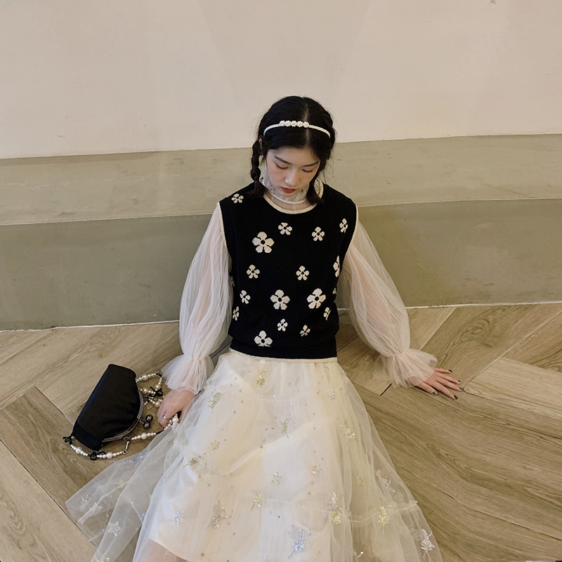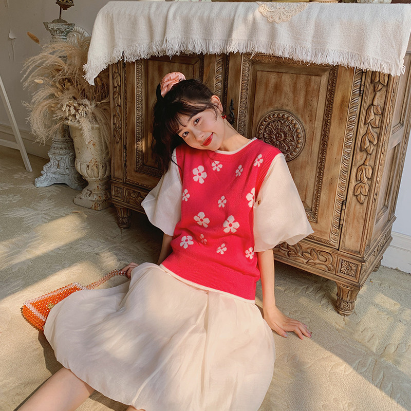 Plum ripe literary retro small fresh knitted vest vest small flower casual top women's spring 2020