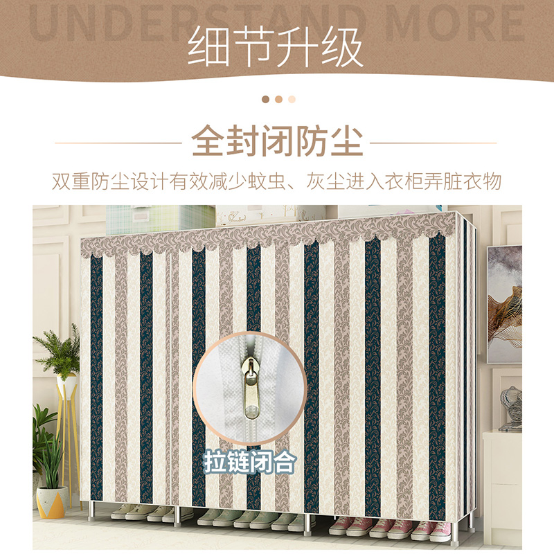 Cloth wardrobe steel pipe thickened reinforcement thickened home bedroom college dormitory rental housing simple fabric storage cabinet