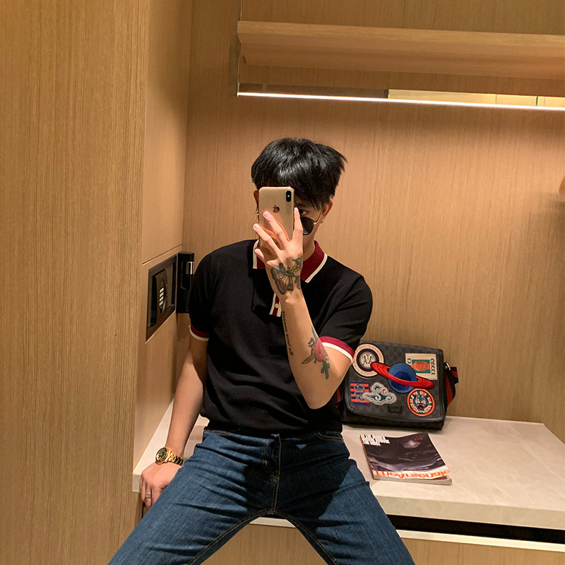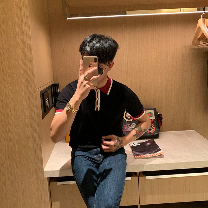 BROTHER summer men's color contrast knitted Paul T-shirt Korean fashion breathable sweater POLO short-sleeved tide