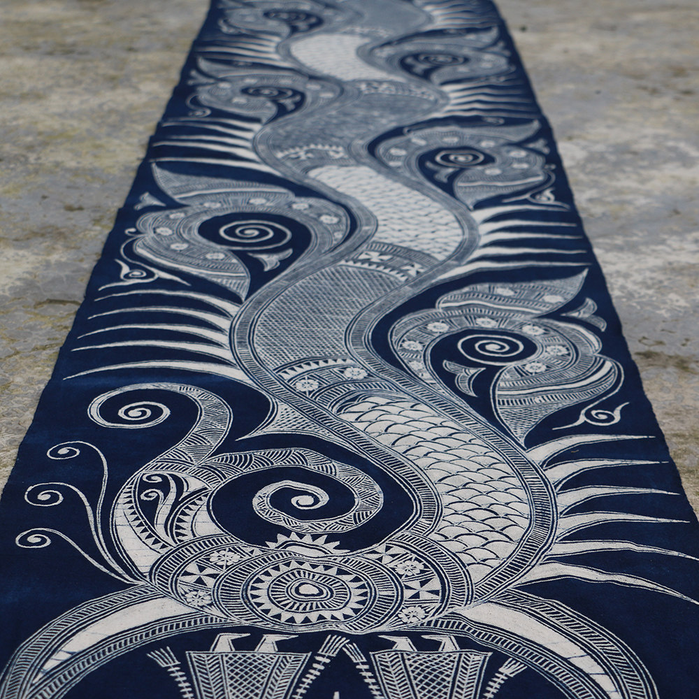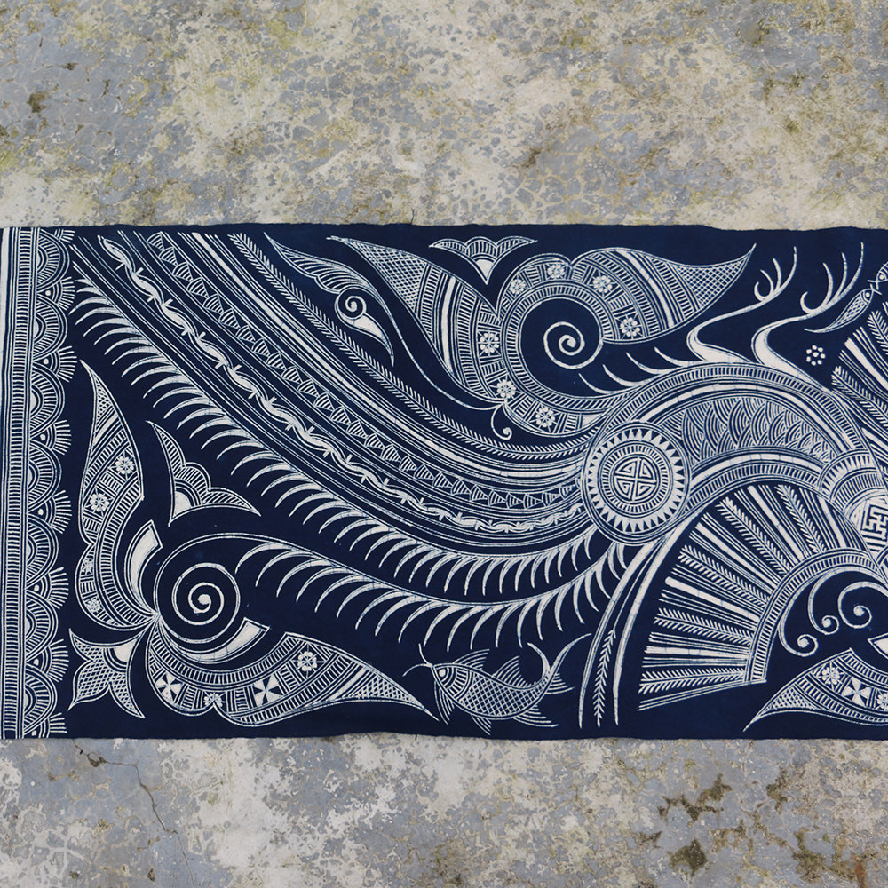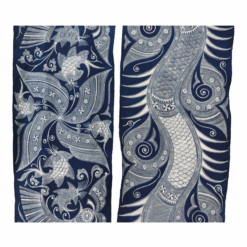 Miao handmade Batik plant dye diy repair program Patchwork material embroidery pattern dragon and phoenix with mending cloth fast cloth head