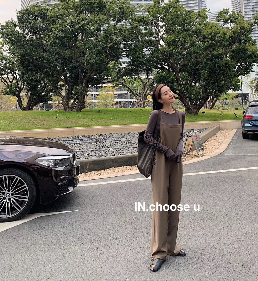 IN Choose u new Korean version temperament age reduction casual slim suit suspenders trousers 1330
