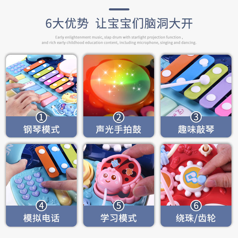 Baby Toy Hand Beat Drum Multifunction Baby Music Drum Beat Beat Drum 7 Rechargeable 8 Puzzle Early Teach 6-12 months