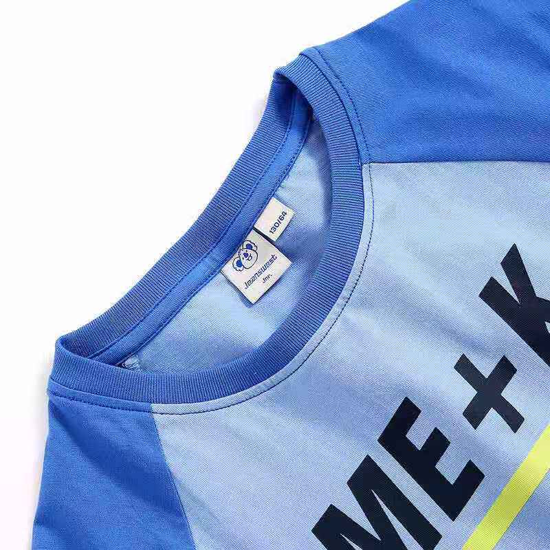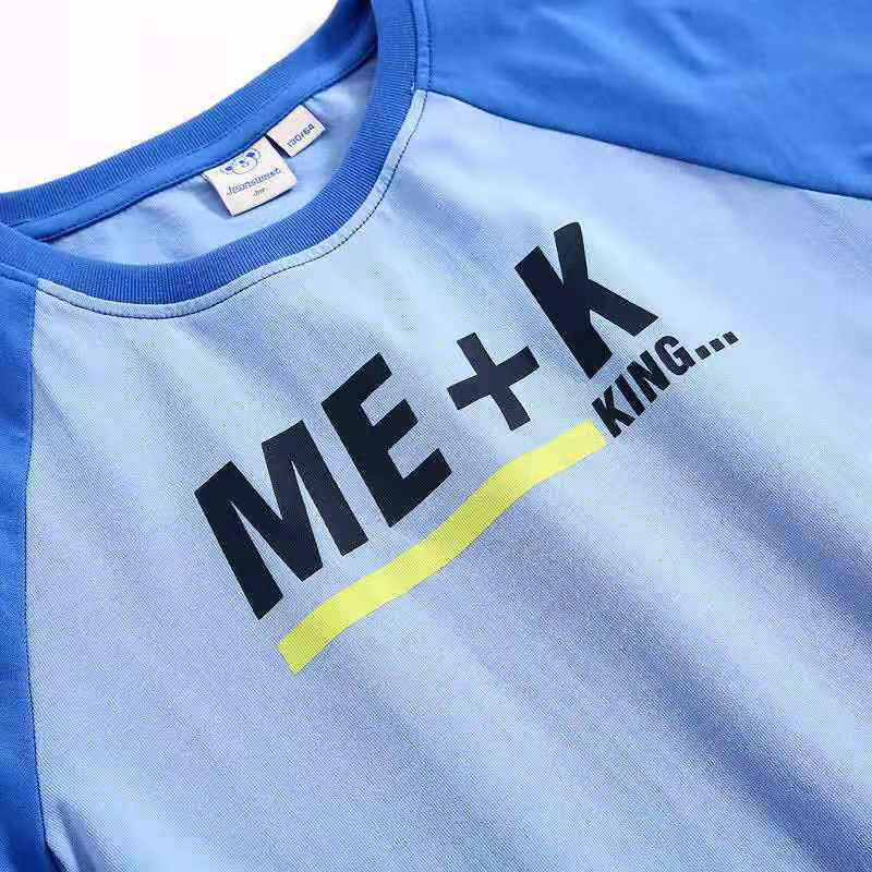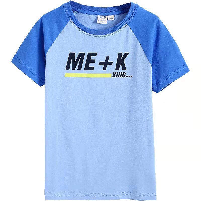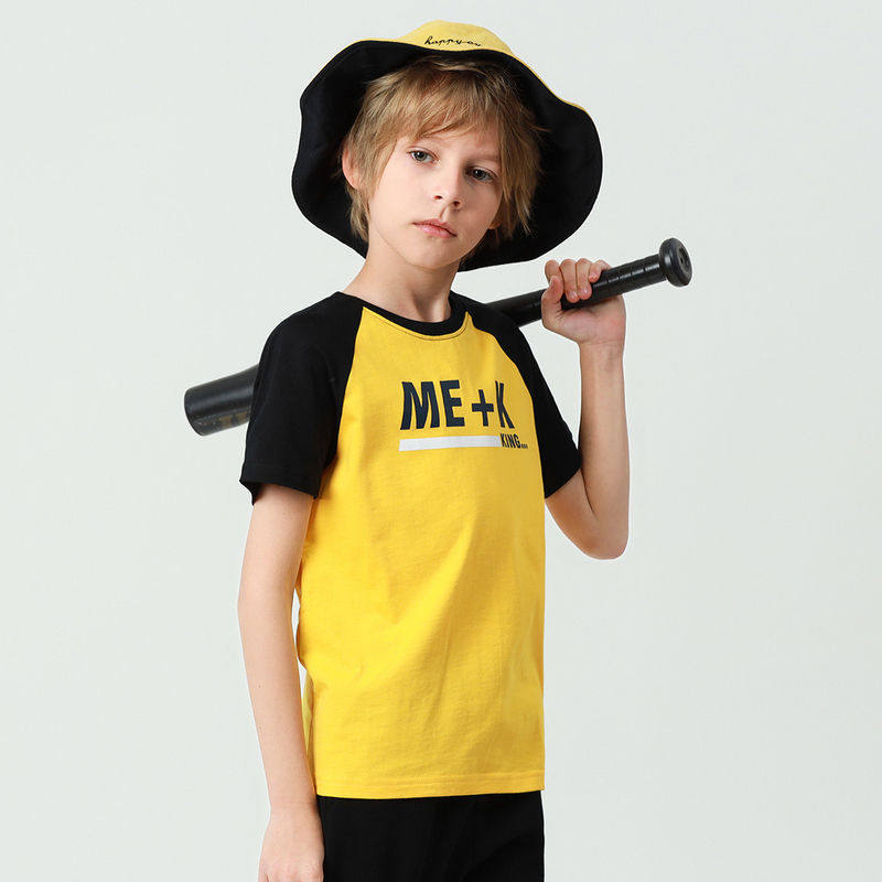 Zhen Weis boys contrast color top 2021 autumn and summer new cotton round neck cattle horn sleeve short-sleeved printed T-shirt tide