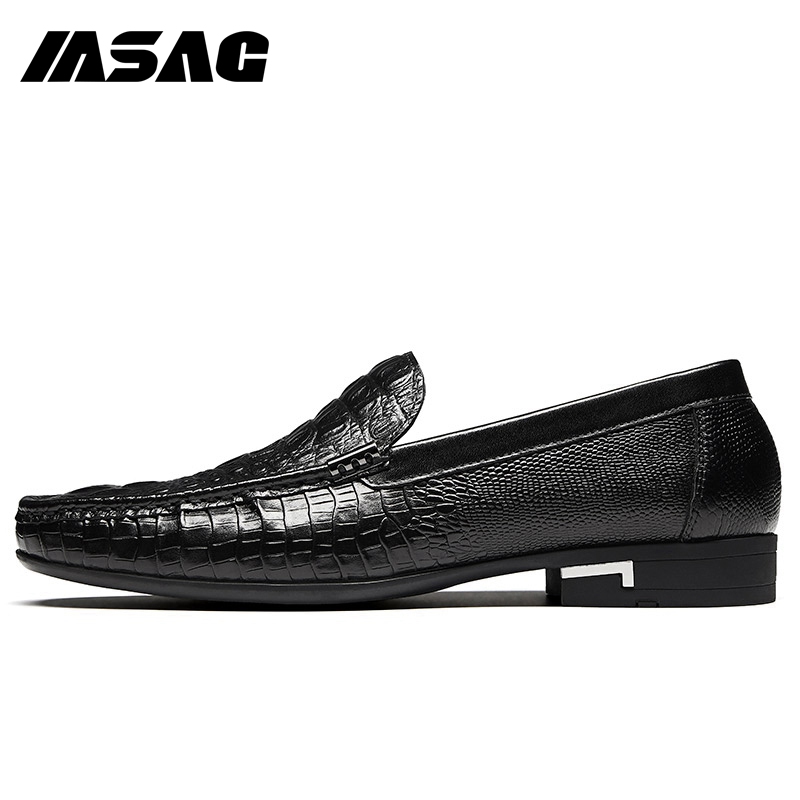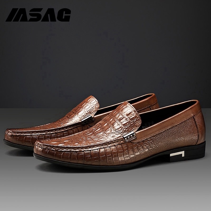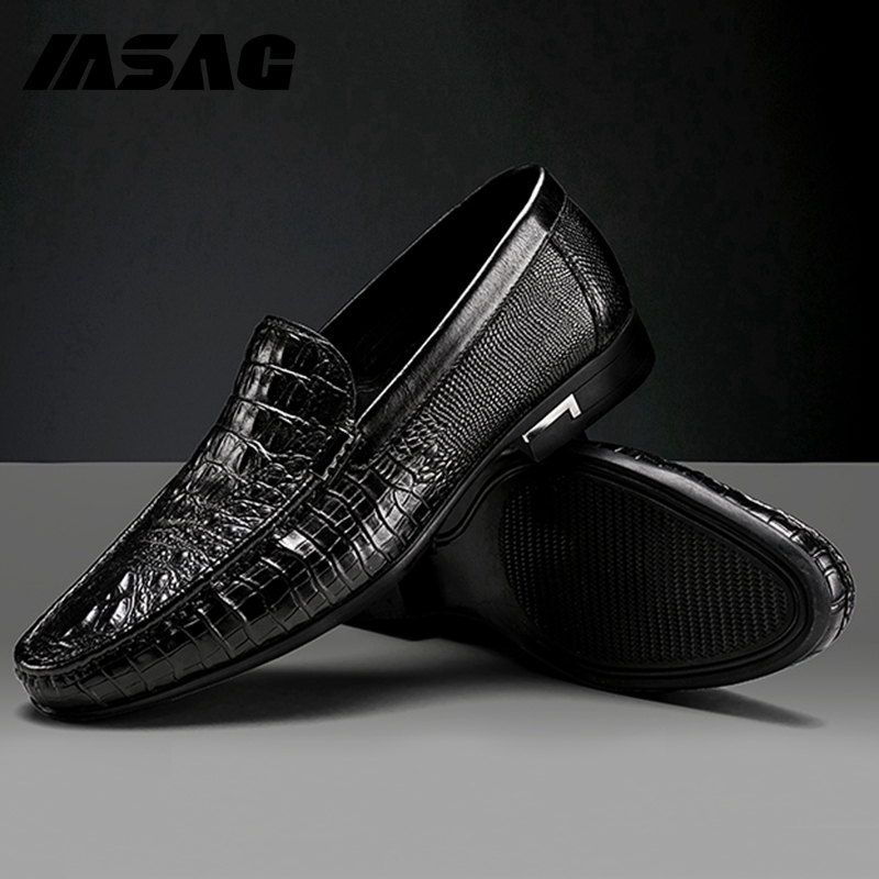 Men's crocodile leather shoes British men's shoes genuine leather casual shoes flat shoes Korean style trendy slip-on shoes