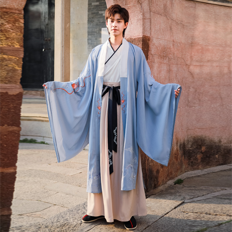 White inner suit (upper-sleeve skirt) only white large-sleeved coat white three-piece set (coat on top of the jacket) light blue inner suit (upper-skirt) only light blue and large-cuff coat light blue three-piece set
