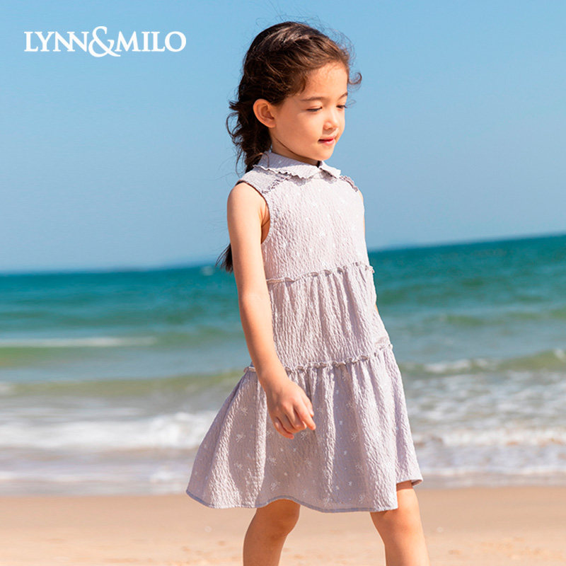LynnMilo 2022 summer girls' dresses offset printing children's sleeveless lapel super fairy vest skirt