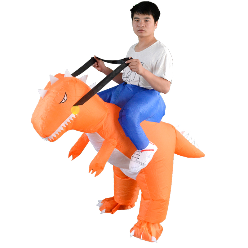 Adult children role-playing parent-child party funny activities dinosaur inflatable man wearing riding dinosaur inflatable suit