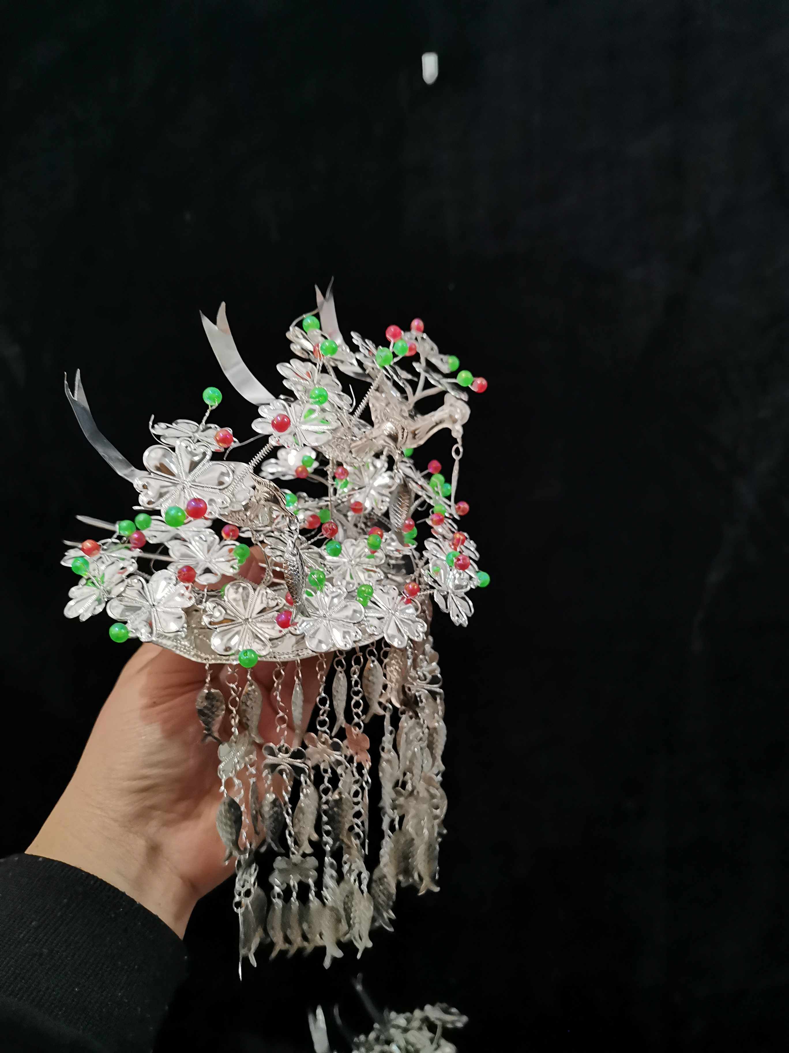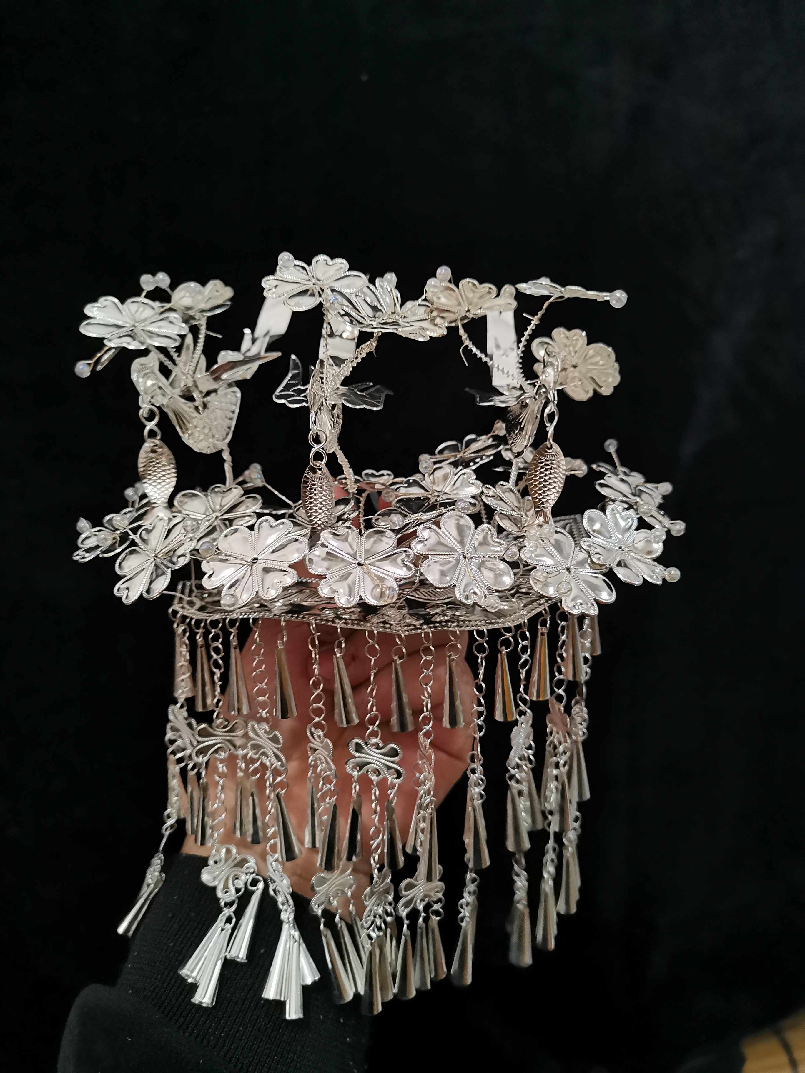 Miao Silver Accessories Inserts Comb Hair Hairpin Bridal Dressage Dressage retro Flow Su Long Hanging Hair Accessories with characteristic Craft Hair Hairpin