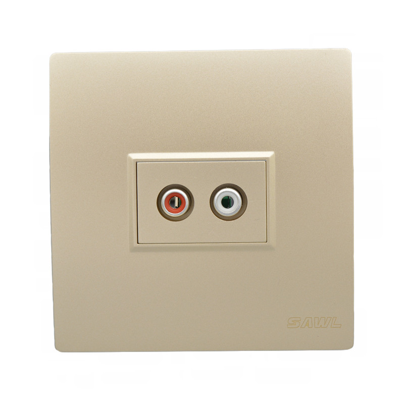 Type 86 Champagne Gold AV Audio Jack One-bit solder-free double hole red and white double lotus multimedia wall panel
