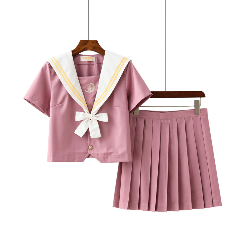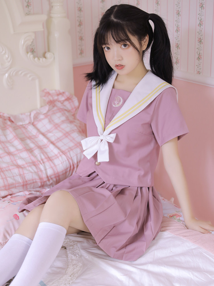 Pink Short Skirt Short Sleeve Blouse Collar Knot Long Sleeve Blouse Collar Junction Pink Short Skirt Long Sleeve Blouse Collar Pink Short Skirt Short Sleeve Blouse Collar Powder Color Short Skirt Cardiovert Long Sleeve