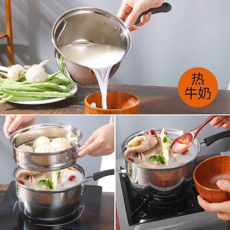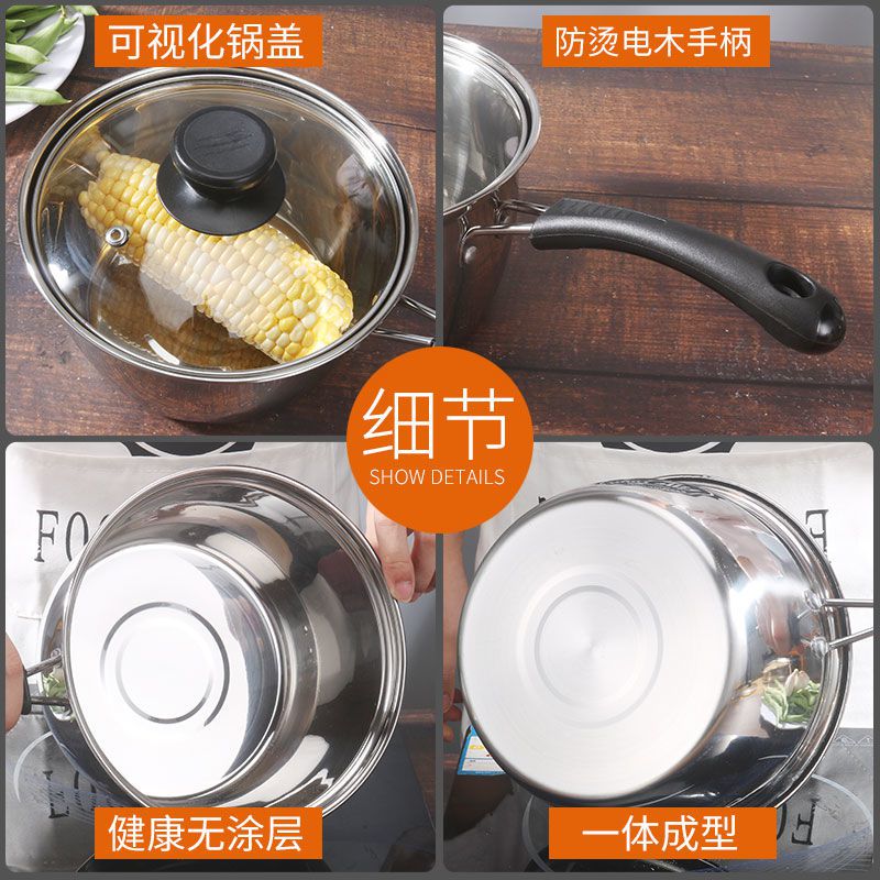 Stainless steel steamer soup pot thickened noodles small milk pot mini small pot instant noodles non-staple food pot induction cooker gas universal