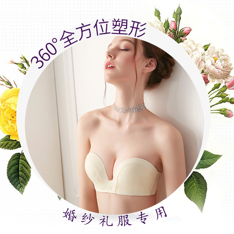 Bra gathering anti-slip palm cups Comfort No Shoulder Strap No Steel Ring Trowel Stealth AB Cup Lace Lingerie