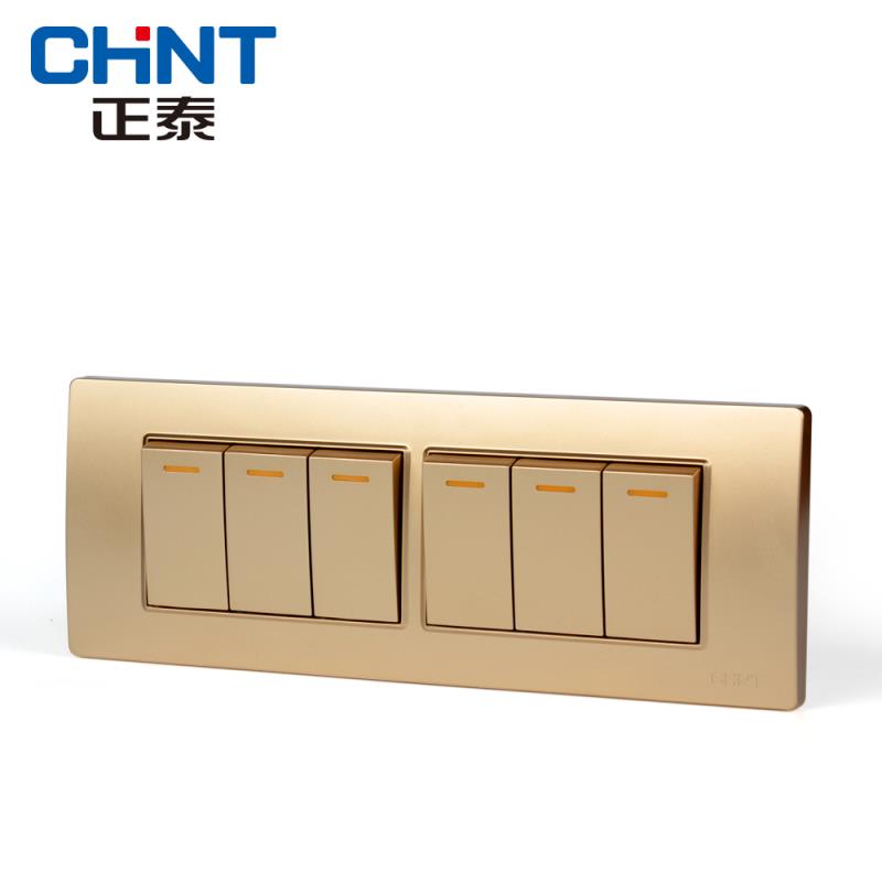 Positive Thai Switch Socket 118 Type Champagne Gold Four Union Six Open Double Cut Six-Linked Switch Panel 6 Electric Light Switch 5G