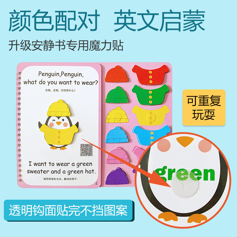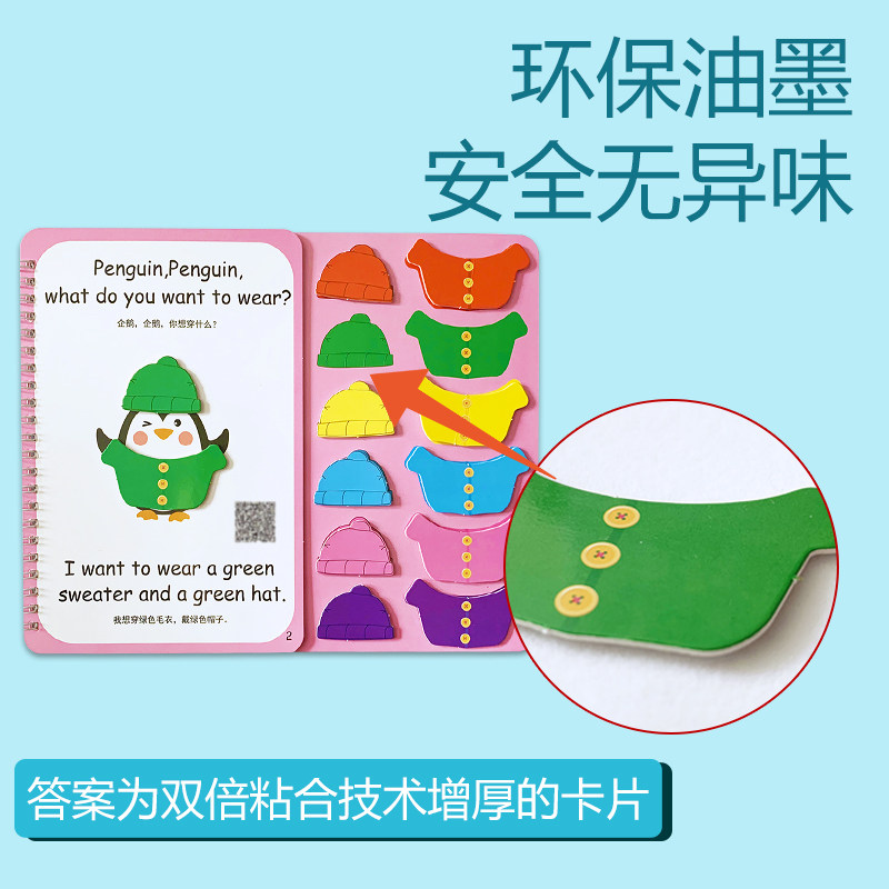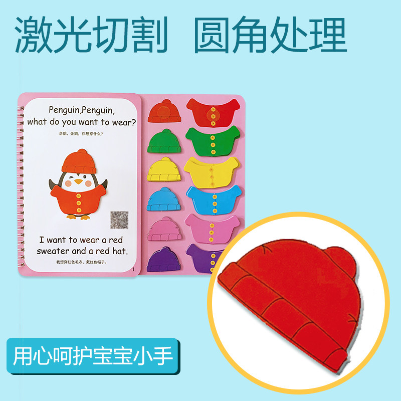 Enlightenment English Adhesive Dress Color Cognition Quiet Book 2 Year Old Enlightenment Post Finished Diy Material Bag Magic Sticker