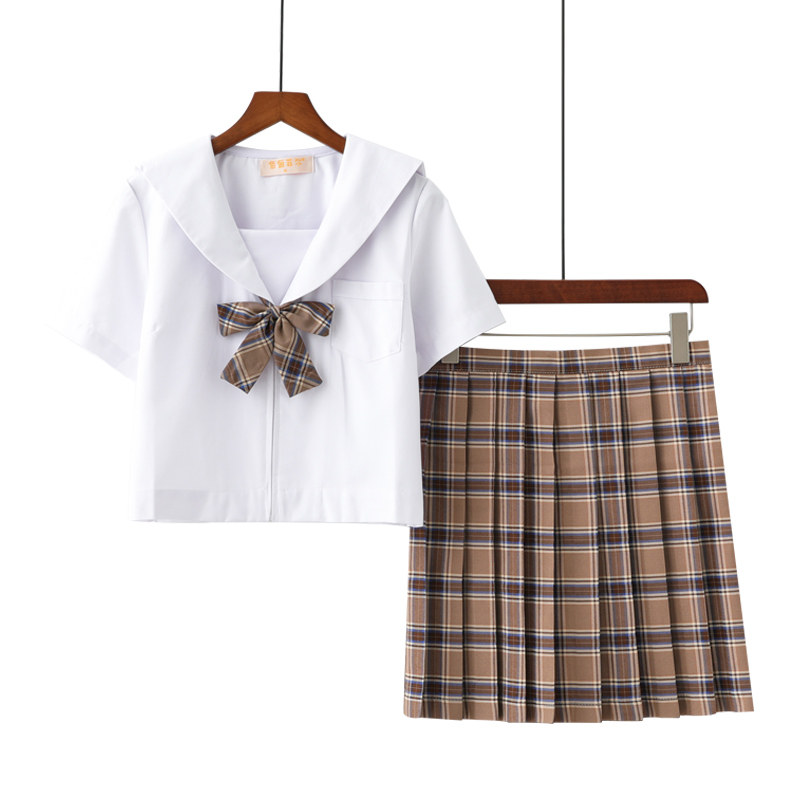 Sky Blue Plaid Skirt Coffee Plaid Skirt Black and White Plaid Skirt Short Sleeve Top Bow Tie Long Sleeve Top Bow Tie Short Sleeve Top Bow Tie Sky Blue Plaid Skirt Short Sleeve Top Bow Tie Coffee Plaid Skirt Short Sleeve Top