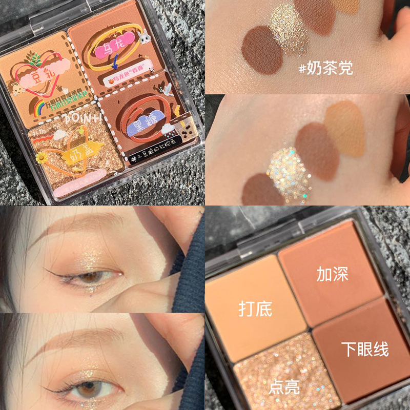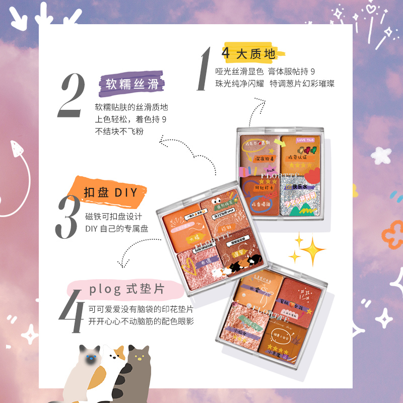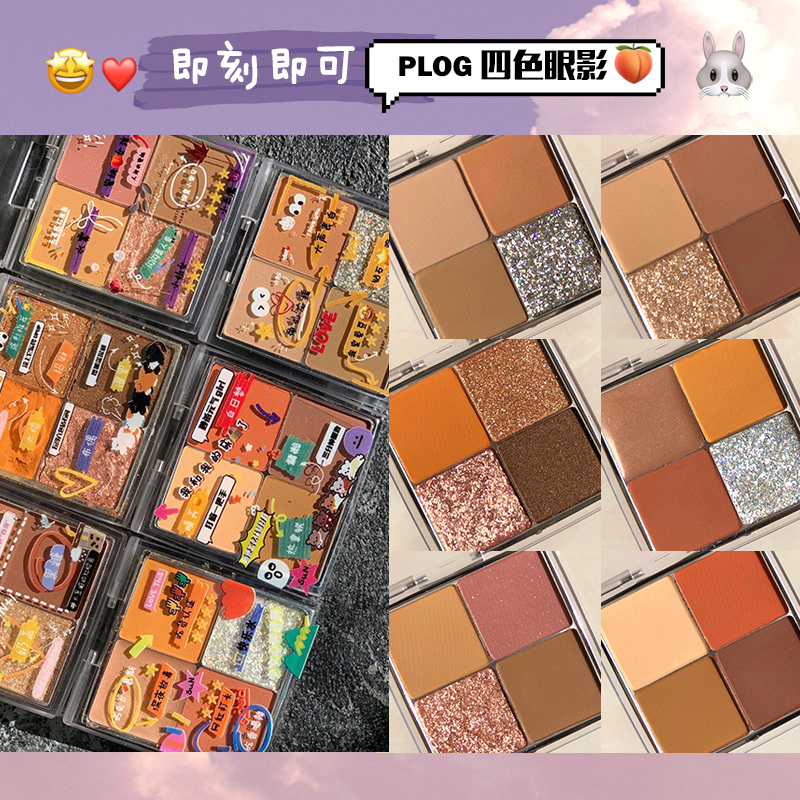 FLORTTE Floria plog Instant four-color eye shadow palette Pearlescent fine flash ins Super fire ground color