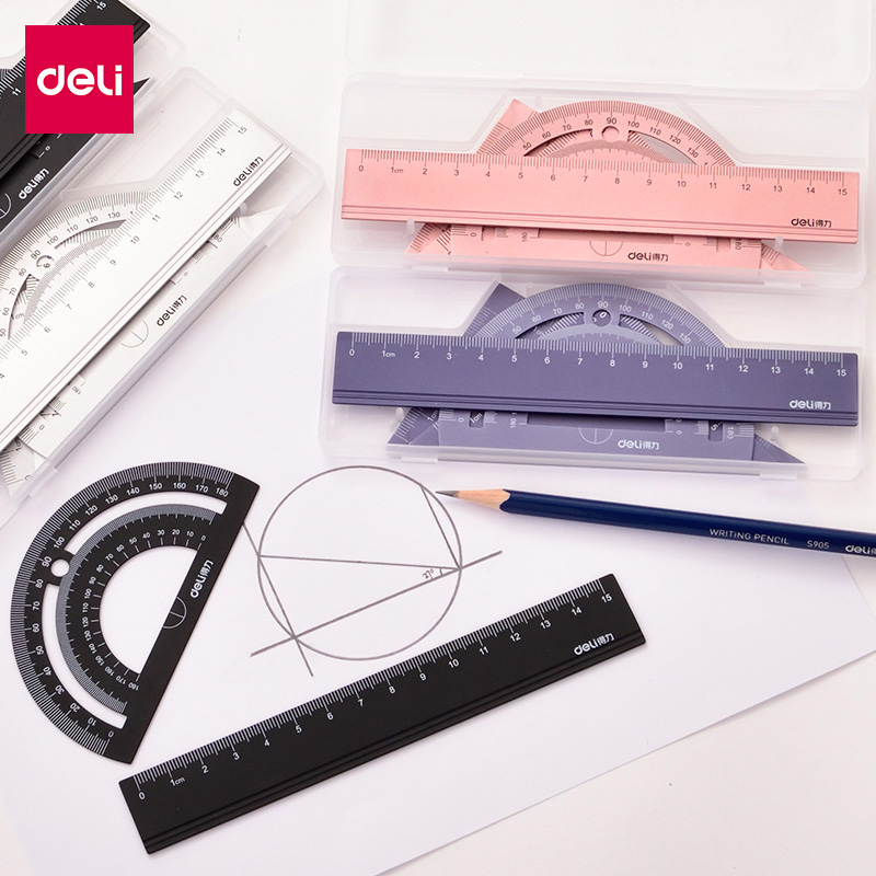 Powerful ruler set ruler triangle plate metal drawing four-piece ruler primary and secondary school students with ruler compass protractor exam ruler multi-function set simple cute portable wave
