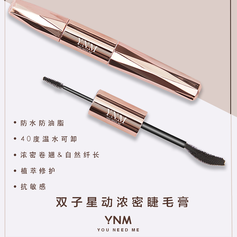 YNM mascara hit bottom double head thick and waterproof slim slim roll teething not easy to dye lasting female crypt official web