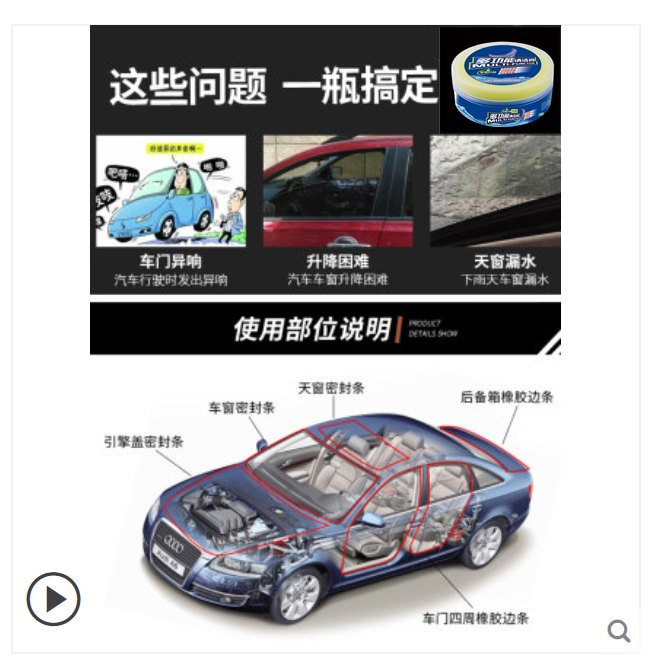 Car door seal maintenance cream rubber protector window sunroof abnormal noise rubber strip softening lubricating oil repair wax