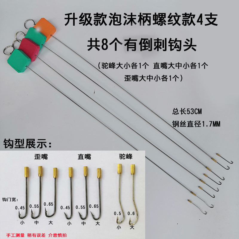 9 8 yuan, 4 pieces with thread, 3 pieces with thorns in wooden handle (with 6 hook heads), 4 pieces in upgraded version (with 8 hooks), 2 pieces without thorns in wooden handle (straight back and hunchback), 3 pieces in classic straight mouth (large, medium and small) classic crooked