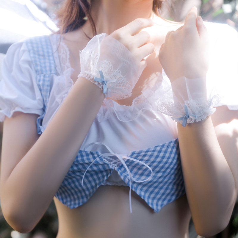 Blue-white (hair hoop-short blouses-bracelet * 2-apron-T-pants)
