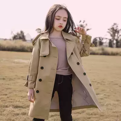 Girls' windbreaker 2021 spring dress new middle school girl foreign pie coat children's long version fashionable spring and autumn coat
