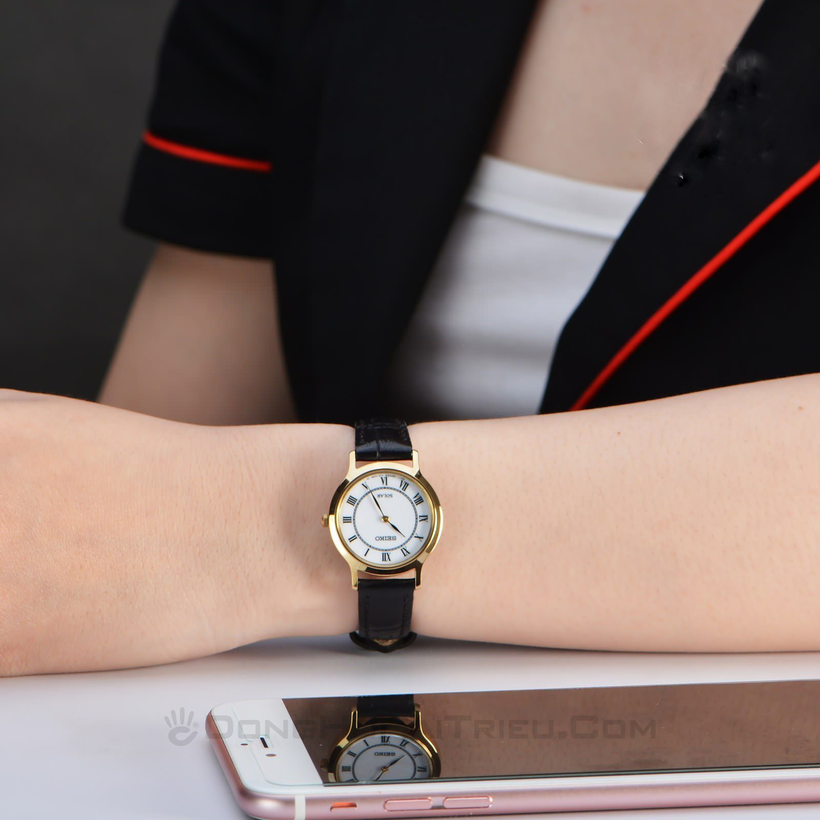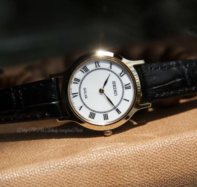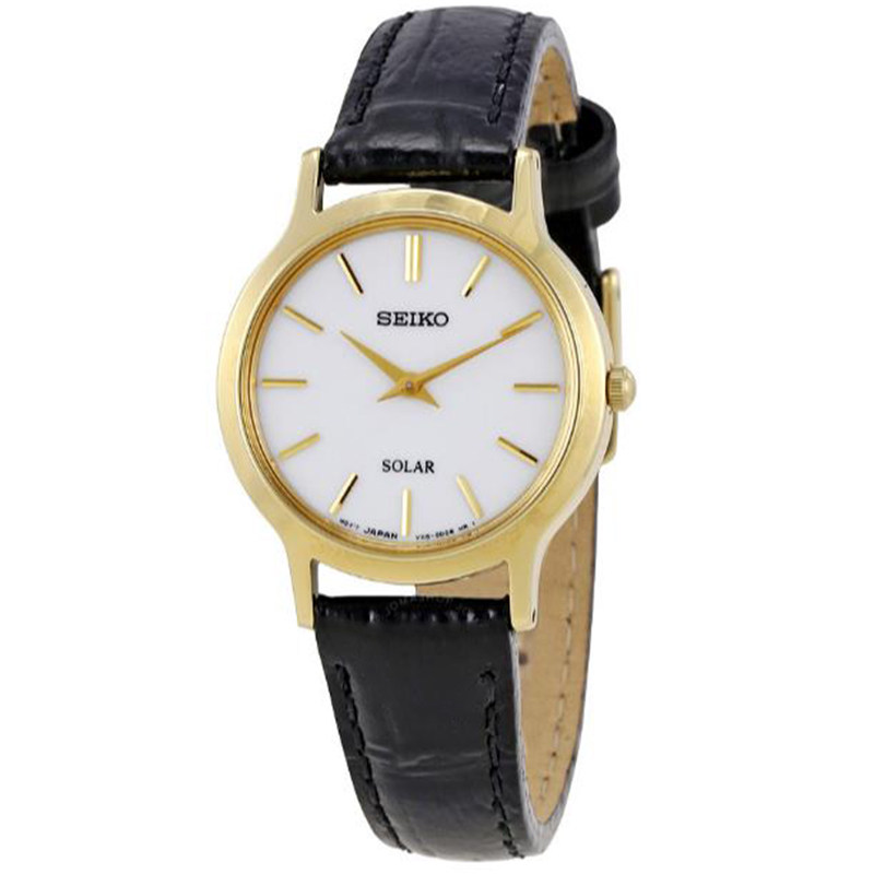 Counter Seiko Seiko SUP304 simple small dial black gold leisure solar quartz women's watch